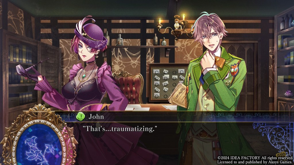 The bad endings for each love interest, known as the “Clown” and “Astray” endings, are all devilishly delightful, but there are some brief generic bad endings in John’s route and the True Ending route that felt unnecessary. The True Ending kind of seemed cobbled together, and like in many otome it felt a bit rushed.