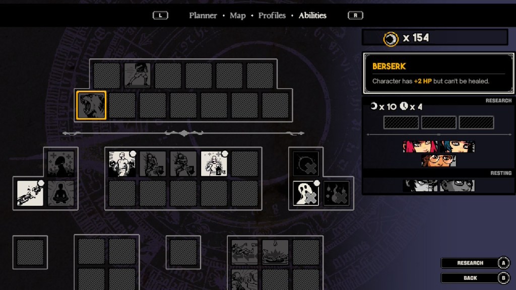 There are a variety of ways to unlock new abilities, including side quests, different activities such as skipping rocks, and purchasing them from the shop once unlocked. By my count there are 66 unlockable abilities in the game; they’re mostly passive abilities such as counterattacks or changing the range of a character’s actions.