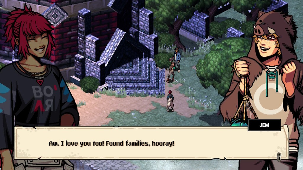 Even the NPCs provide some comic relief here and there, such as “Bad Dad” and his aptly named “Kid Who Is Leaving Town As Soon As He Turns 18.” There are also a bunch of pop culture references that made me laugh.