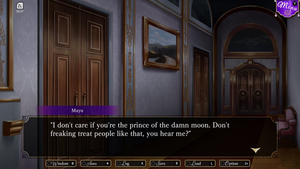 As they’re all princes, the love interests have their own valets/servants with them at school. Fenn also had my favorite attendant, a woman named Violet. She was kind to Mayu, whose thoughts about Violet always made me laugh. I liked the other servants, but if any of them could be a love interest I’d honestly want a route for Violet. (Hey, they did one for Medusa in Astoria: Fate’s Kiss!)