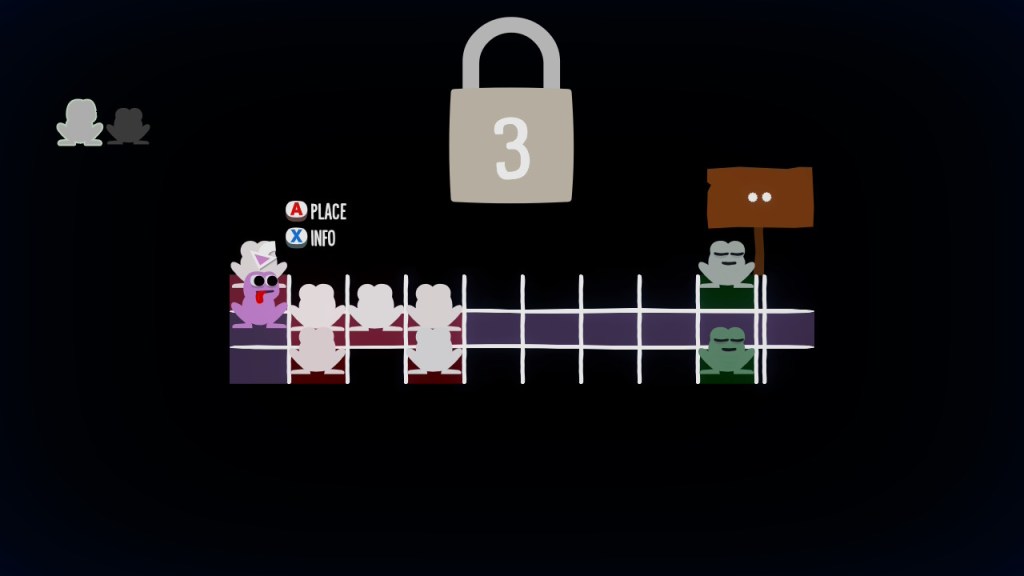 I was fine only having 8 frogs in my inventory at a time, but even just having unused frogs in something similar to the Pokémon PC storage system would’ve been nice so I could switch up my team formations on occasion without losing any of them. There isn’t any kind of frog encyclopedia or anything that lets you see which ones you’ve obtained before, either.