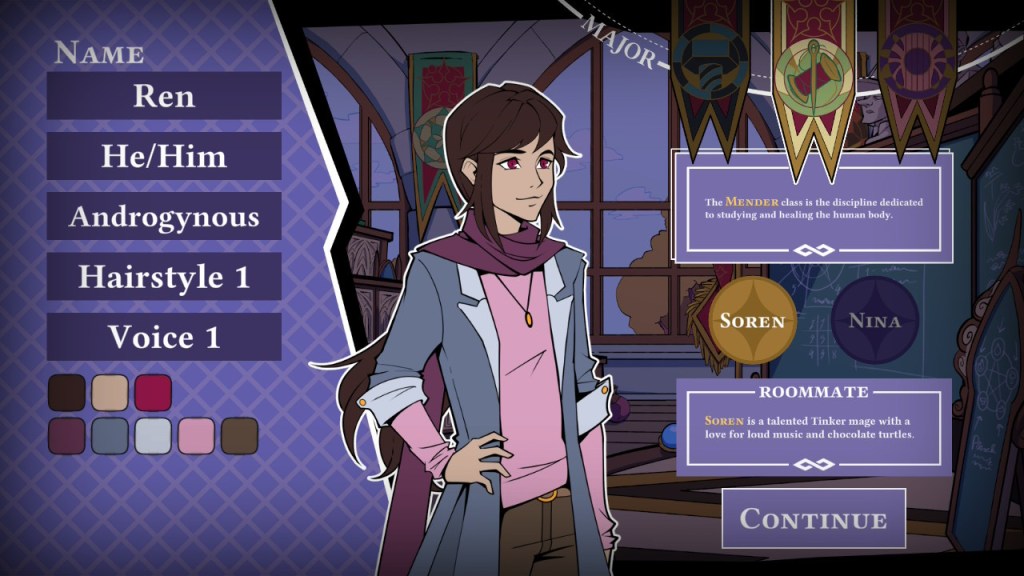 You also get to choose your character’s “major” at the academy and your roommate. Ren is the default name, but you can rename your character and select a more masculine or feminine voice for their lines. They also give us the ability to choose the outcome of decisions made in the first game; you can skip this if you’d like, but having played the first game it was neat to have those events referenced in this one.